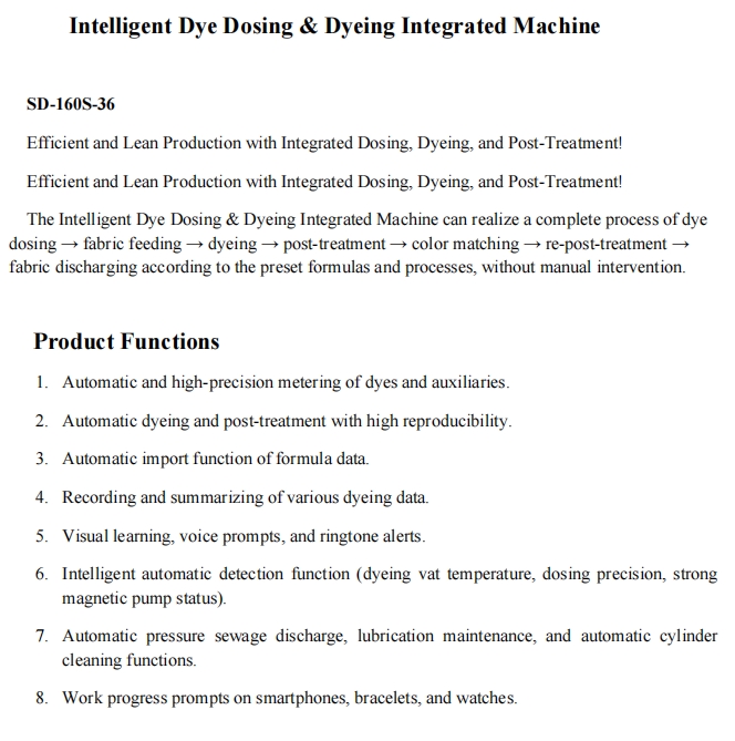 产品名称: Intelligent Dye Dosing & Dyeing Integrated Machine